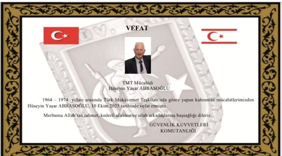 TMT MÜCAHİDİ HÜSEYİN YAŞAR ABBASOĞLU TAZİYE MESAJI