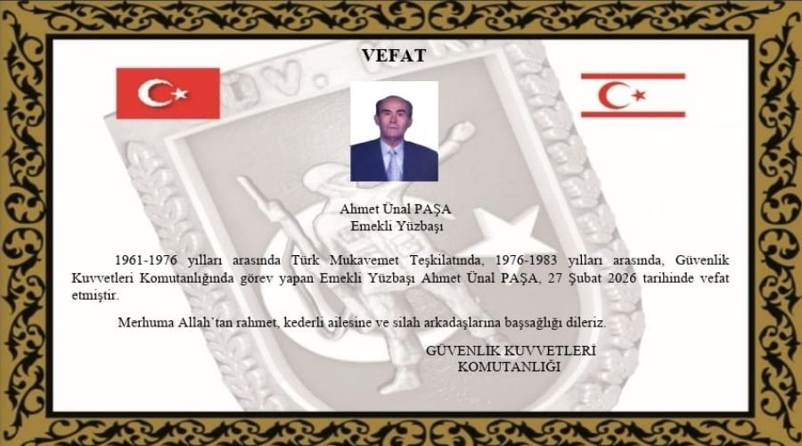 EMEKLİ YÜZBAŞI AHMET ÜNAL PAŞA TAZİYE MESAJI