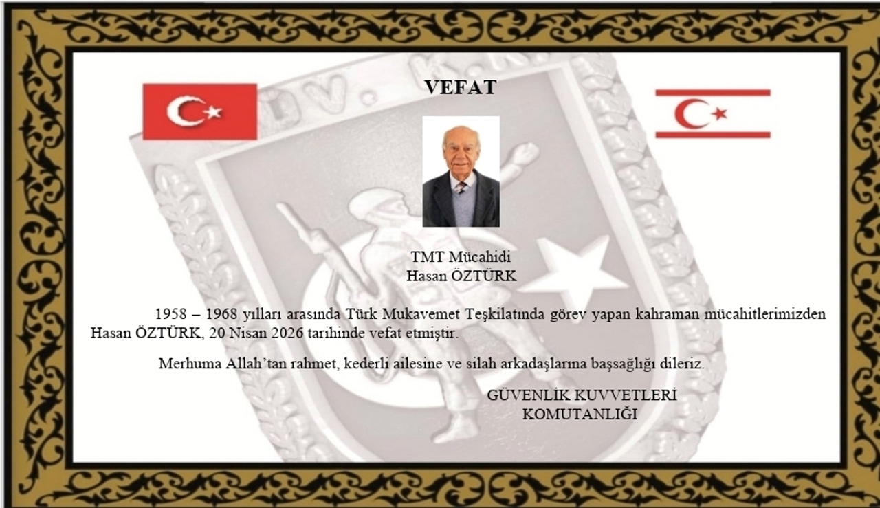 1958 – 1968 yılları arasında Türk Mukavemet Teşkilatında görev yapan kahraman mücahitlerimizden Hasan ÖZTÜRK, 20 Nisan 2026 tarihinde vefat etmiştir.